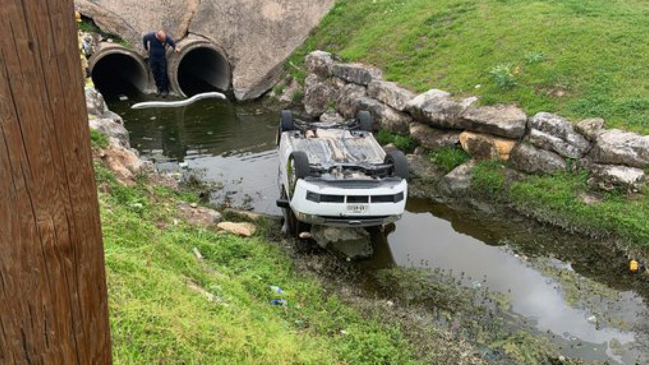 In a tweet, the Austin Fire Department said the car fell on its roof at 3300 Manor Road near the cross Section of Tillery Street and Anchor Lane. They received the initial call at 9:19 a.m.