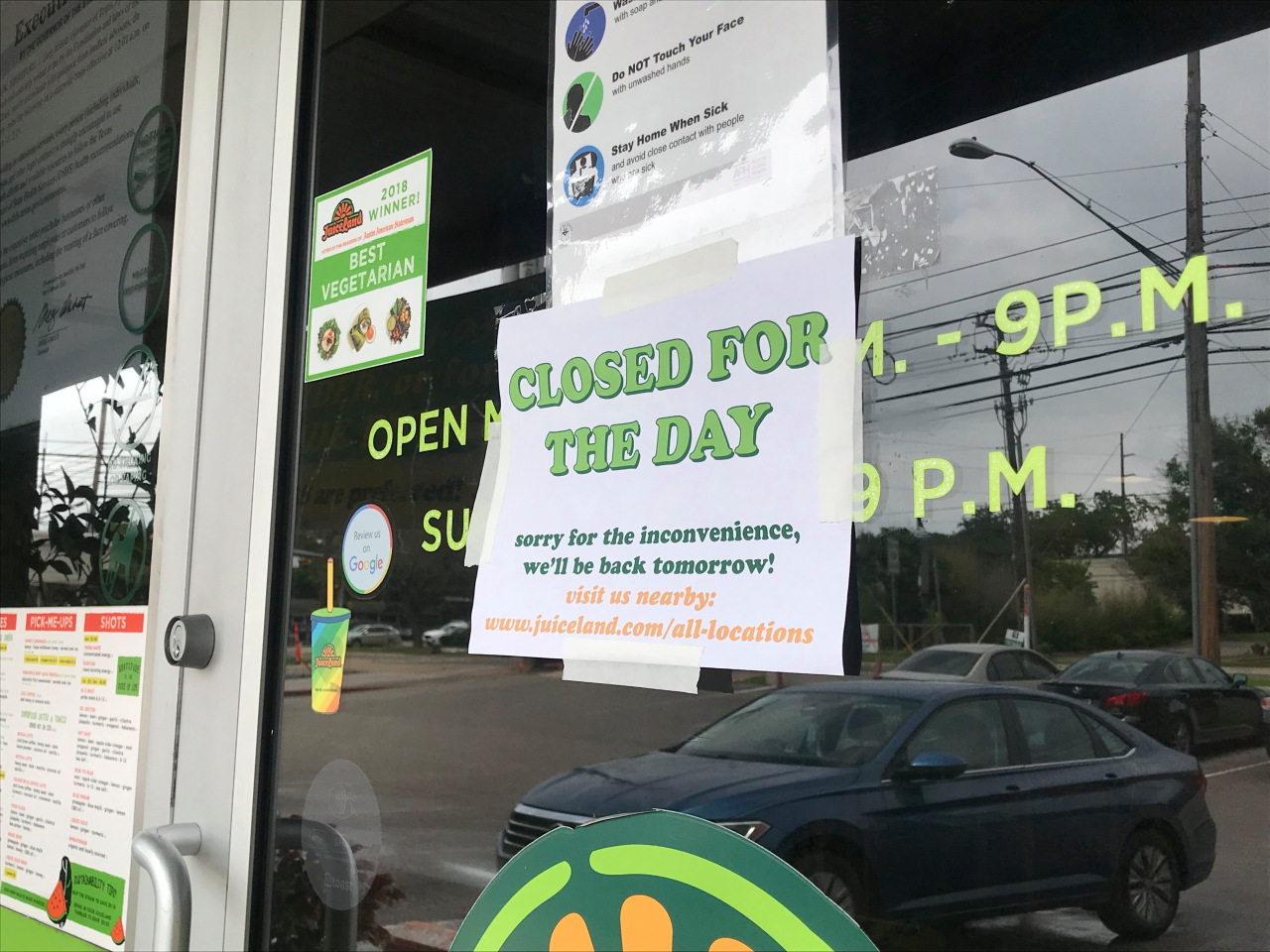 Juiceland’s Domain Northside, Saltillo Plaza, Mueller and Balcones locations are closed Monday, according to both the company’s website and each shop’s respective answering machine. The 29th & Guadalupe shop is running on limited hours Monday from 9 a.m. – 4 p.m.