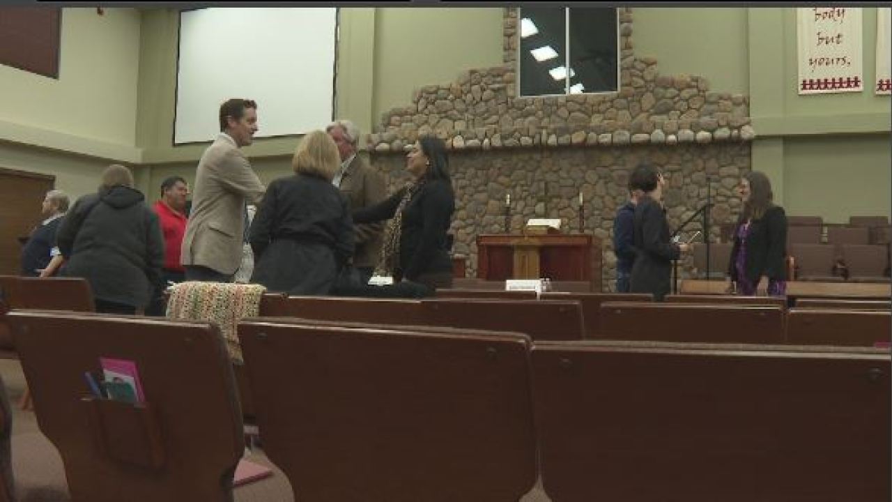 “Would you write or support legislation at the state level to enhance background checks, restrict high-capacity magazines and institute red flag laws?” asked Rev. Jeff Thompson of the Living World Lutheran Church.