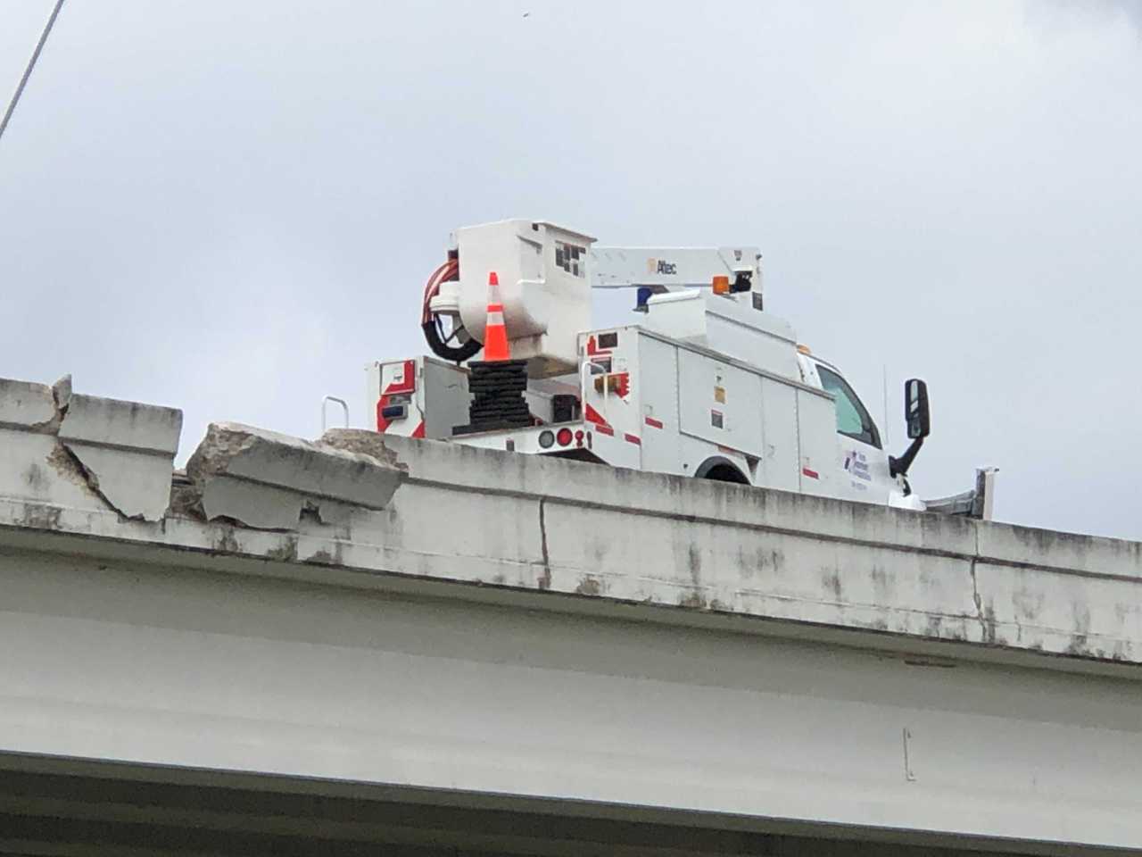 APD said the work truck collided with a 2004 Ford F-250 pickup and both vehicles lost control, coming to rest against a concrete wall on the flyover.