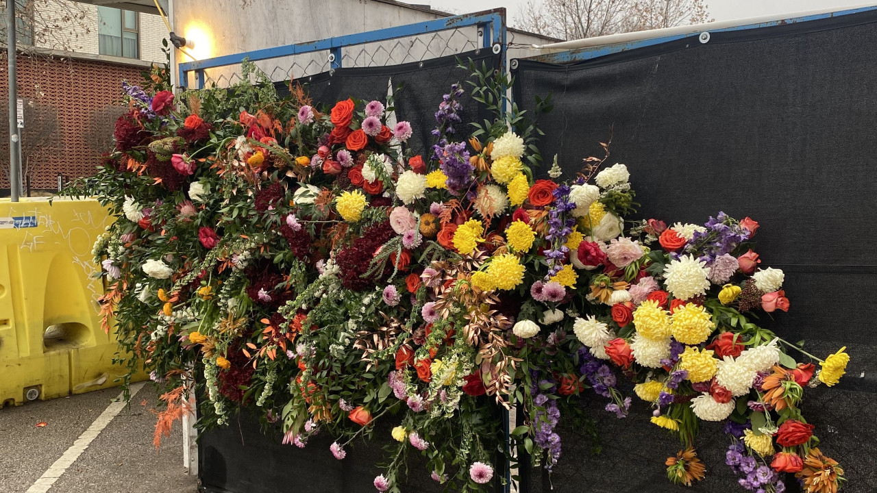 He called his friend, floral designer Antonio Bond from Transplants Floral, and together they came up with the idea of a “floral graffiti” installation. At first, it was meant to be a small install, but more friends and residents pitched in.