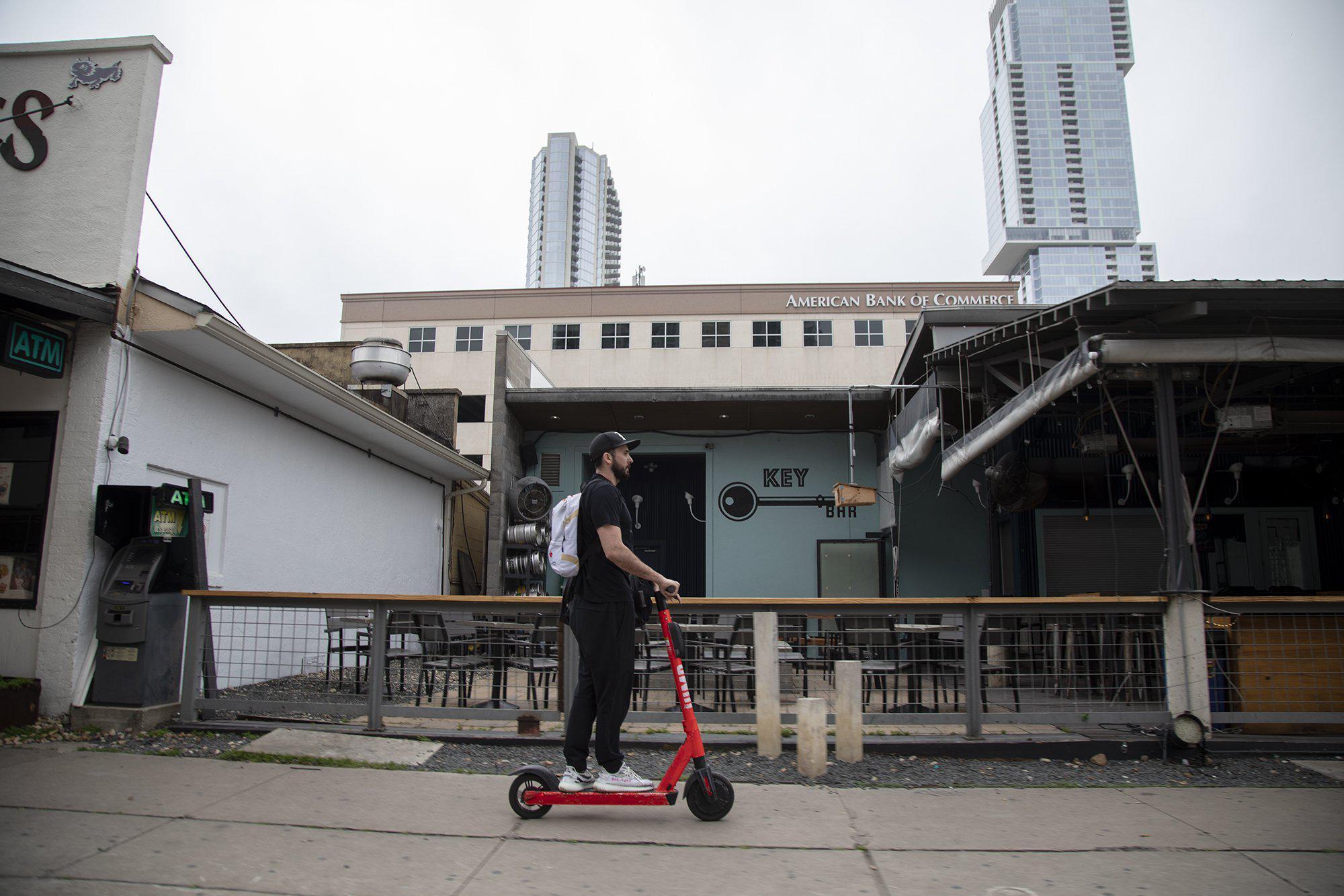 E-scooters and bikes remain available for rental in Austin even as staying at home is being encouraged, city officials said. Ten shared mobility companies operate in Austin, including moped and vehicle companies. It would be up to each company to pull its devices from use, officials said.
