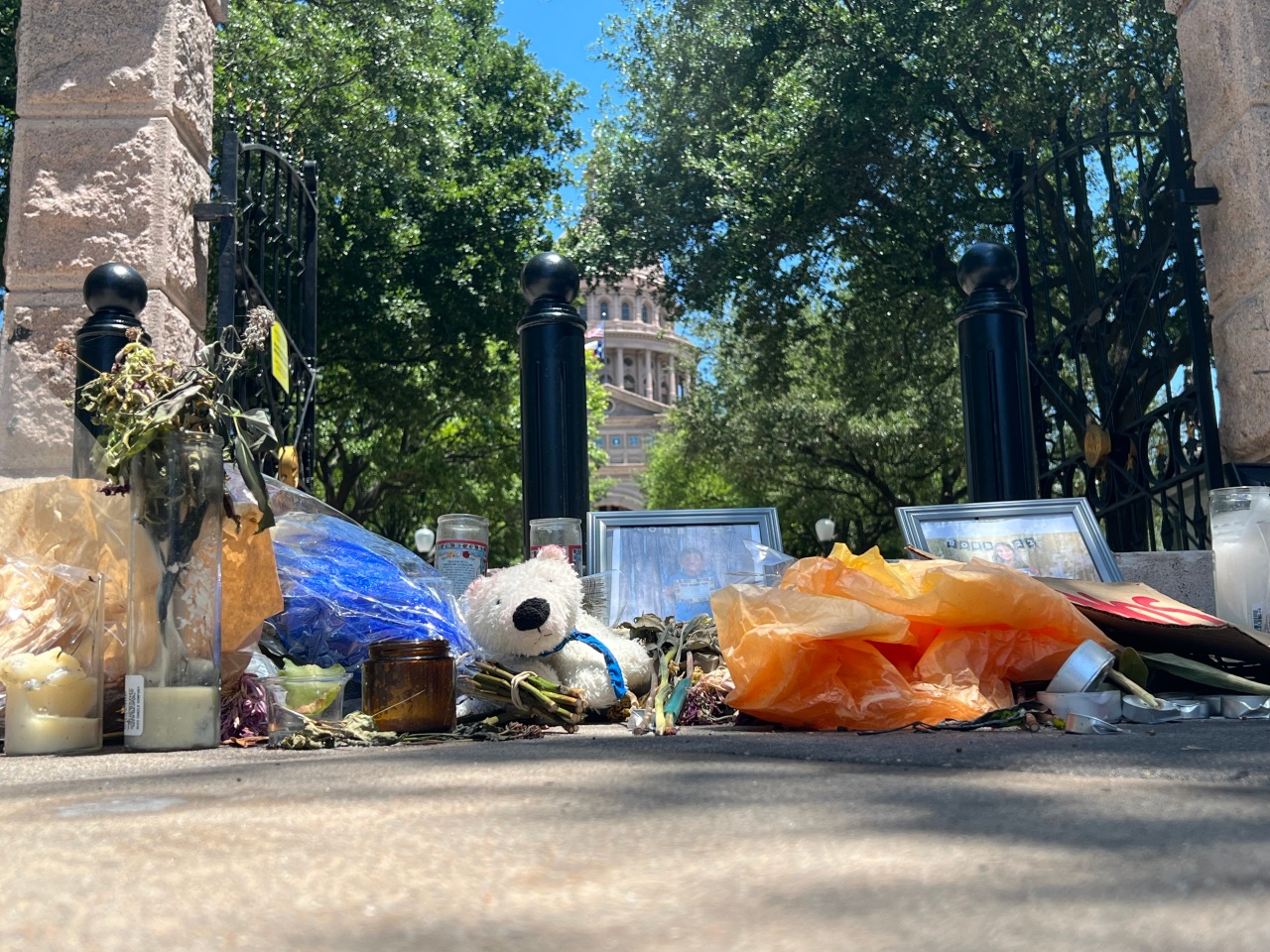 Outside the entrance to the Texas State Capitol, there is a growing memorial of flowers, candles and stuffed animals. The faces of fourth-graders murdered in Uvalde line the steps.