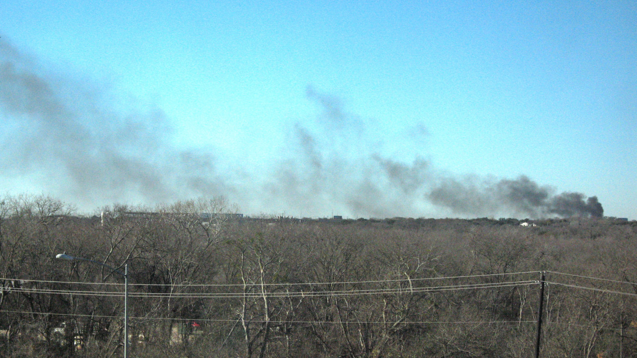 Thick black smoke could be seen over the area after the fire broke out at about 10:30 a.m.