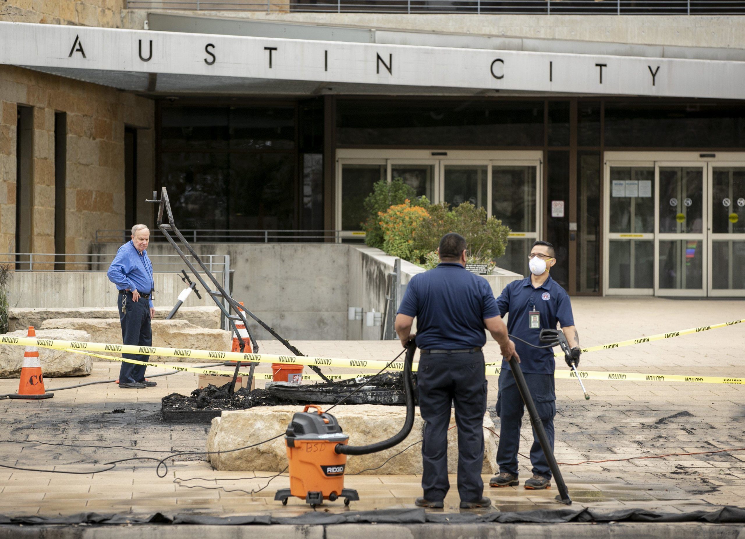 Austin fire officials are investigating after the luchador grackle statue outside City Hall downtown appears to have burned to the ground.