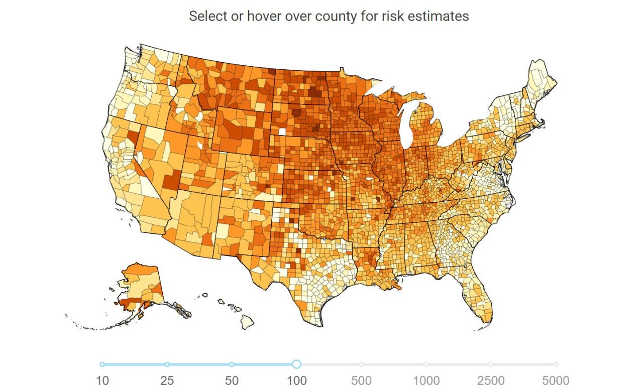 The tool, updated daily, was created by UT’s COVID-19 Modeling Consortium to let families see both the potential number of new cases and the risk of interacting with someone infected with COVID-19 at school, the release says. Your search can be targeted toward any day of the week and in any county in the U.S.