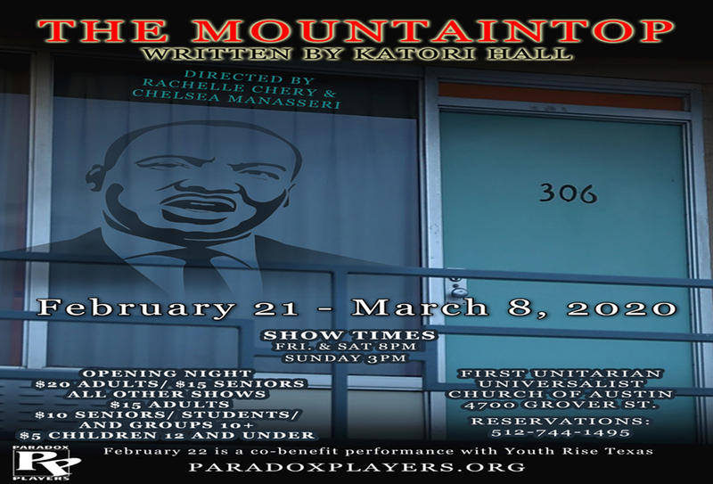 ‘The Mountaintop’ is produced by Paradox Players and runs through Marrch 8 at the First Unitarian Universalist Church of Austin.