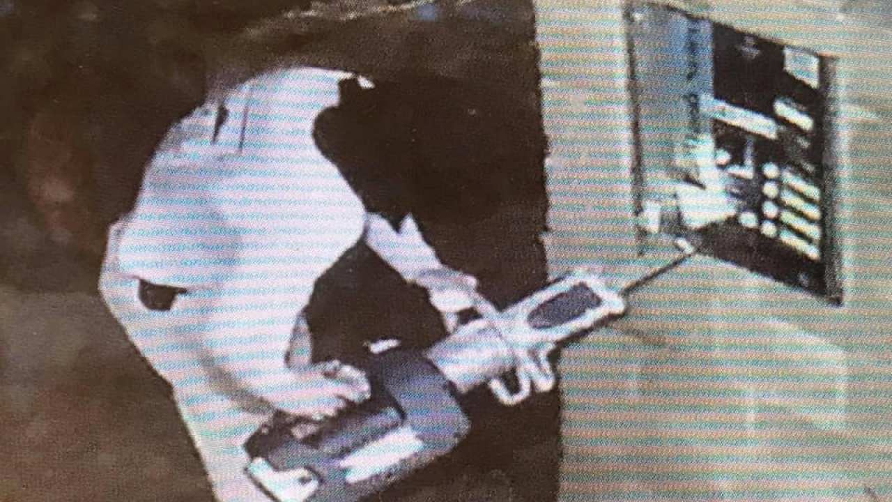 Surveillance images released by police appear to show a man holding a large device towards the machine.