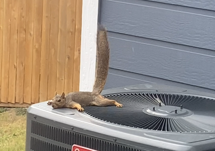 One Austin family spotted a squirrel that took it to the next level — laying out over an HVAC unit. It forced the squirrel’s tail directly up in the air, which they caught on camera.